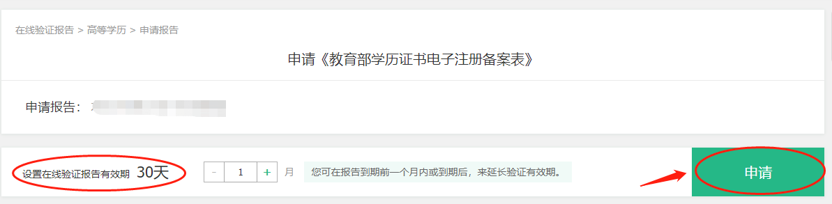 申请《学历证书电子注册备案表》后,即可获得“在线验证码”,如已申请过但有效期已经过期,点击“延长验证有效期”即可延长使用该验证码